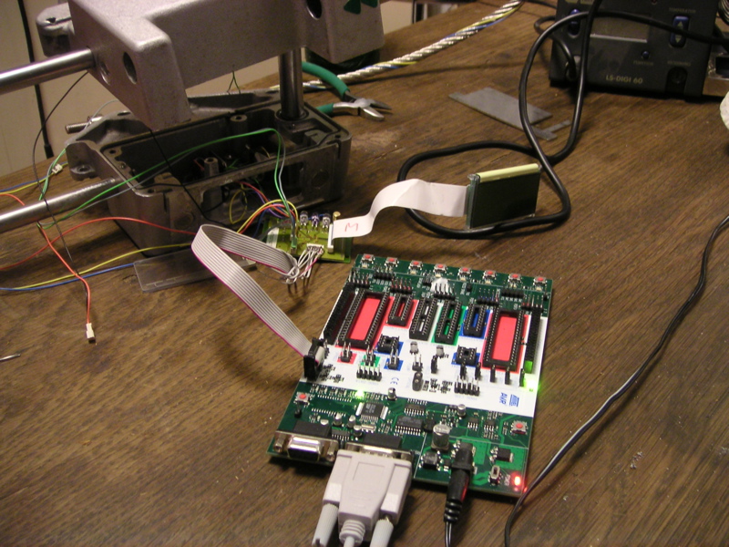 Im Januar hatte einer der Beteiligten dann endlich eine Idee, wie weiter vorzugehen sei. Auf der Platine war uns eine unbenutzte 6-polige Steckerleiste aufgefallen, und wie sich herausstellte, handelt es sich dabei um den ISP-Connector (In System Programming) des Atmel. Daran schlossen wir dann ein Atmel-Developer-Board STK500 an. Zum Auslesen wurde hauptsächlich das freie UISP (“Uisp is a tool for AVR microcontrollers which can interface to many hardware in-system programmers”) benutzt. Die auf dem Atmel vorhandenen „Intellectual-Property“-Bits waren in einem undefinierten Zustand, deswegen konnten wir das Flash des Atmels mit der acht KB großen Firmware auslesen.